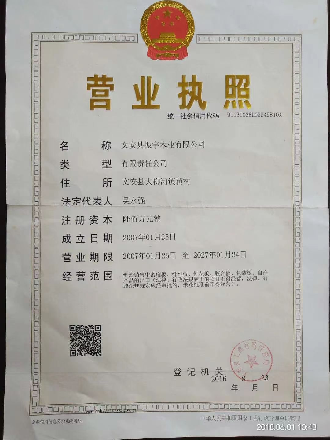 文安縣振宇木業(yè)有限公司位于文安縣大柳河鎮(zhèn)苗村文左公路南側(cè),交通便利,地理位置優(yōu)越,占地面積60000多平方米,于2003年3月籌建,2004年1月投產(chǎn),開(kāi)始稱“文安縣振宇中密度板廠”,2007年1月改為“文安縣振宇木業(yè)有限公司”。 …